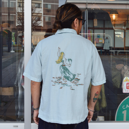 コットンシルクアロハシャツS/S(刺繍:フラガール)