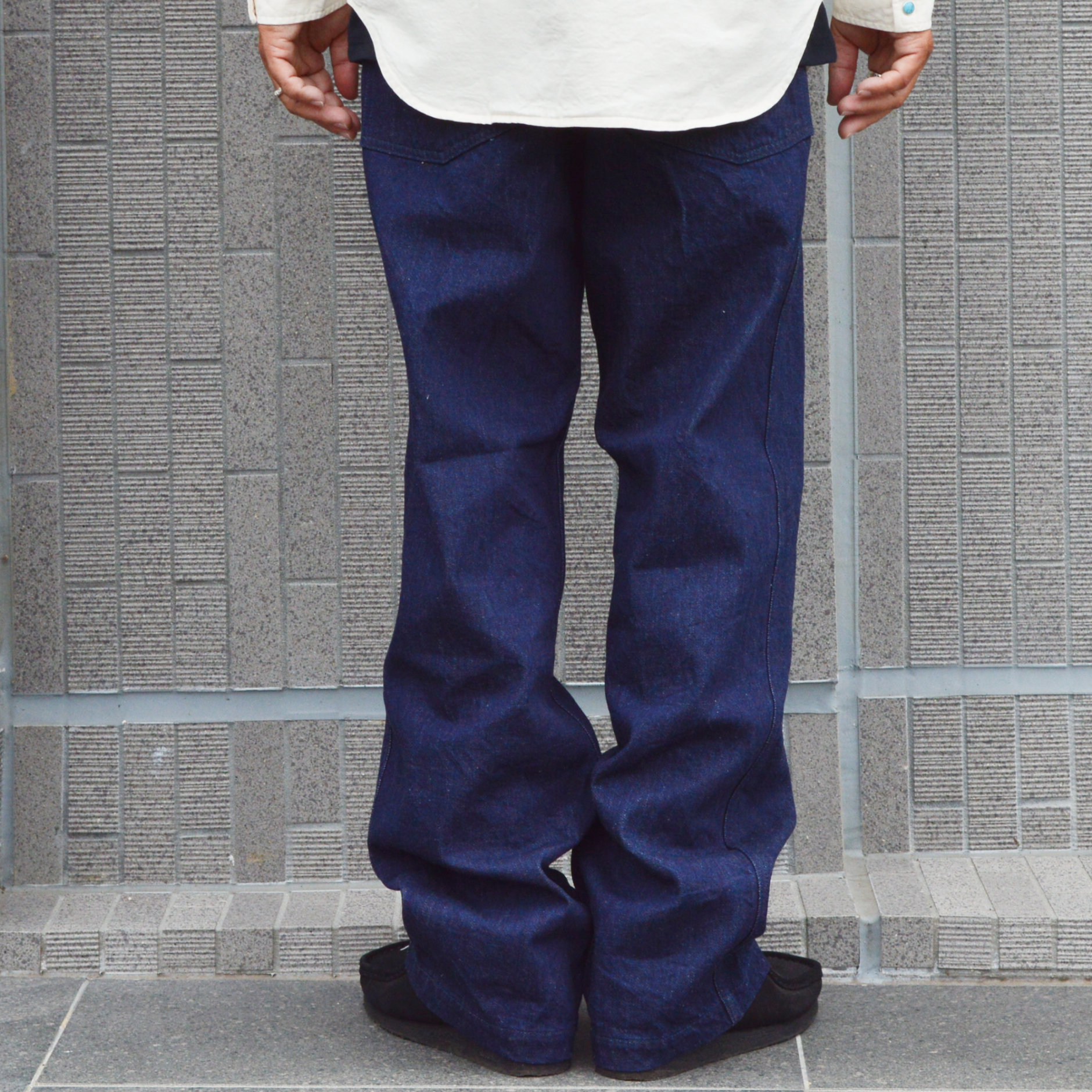 1940年代のヴィンテージクロージングに見られるベイカーパンツのシルエットをオマージュしたデニム素材を使用したアイテム。