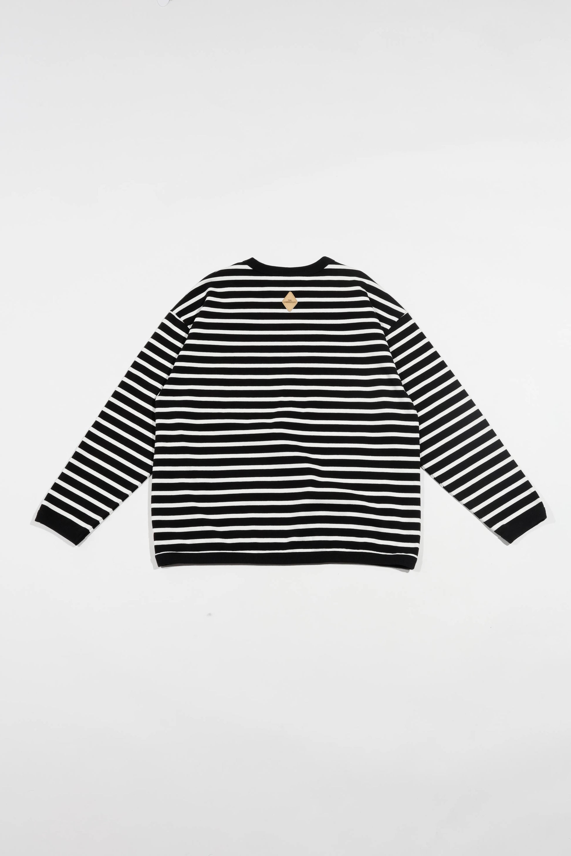 袖口と裾がリンガー仕様でロンTee以上スウェット未満な雰囲気に仕上げた1着。